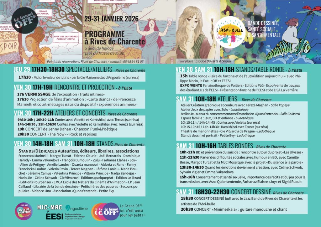 Organisé dans le cadre du Grand OFF* à Angoulême, cet événement propose une programmation riche mêlant art, dialogue et prévention.